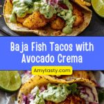 Crispy Baja Fish Tacos with creamy avocado crema, crunchy cabbage, and fresh pico de gallo. These quick, flavorful tacos bring coastal Mexican vibes to your kitchen in under 30 minutes—perfect for weeknights or entertaining.