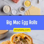 Crispy Big Mac Egg Rolls filled with seasoned ground beef, cheddar cheese, tangy pickles, and served with a creamy burger-style dipping sauce for a fun and flavorful appetizer.