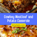 Cowboy Meatloaf and Potato Casserole is a hearty comfort food dish that layers savory meatloaf with tender sliced potatoes and finishes with melted cheddar cheese. Perfect for weeknight dinners or family gatherings, it combines two classics into one cozy casserole.