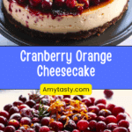This Cranberry Orange Cheesecake is a festive, elegant dessert featuring a creamy orange-infused filling, a spiced gingersnap crust, and a tangy cranberry topping. It’s the perfect balance of sweet, tart, and creamy—a showstopper for holiday gatherings or special occasions.