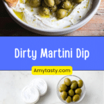 A creamy, savory dip inspired by the bold flavors of a dirty martini, blending rich cheeses with briny olives and bright citrus. This easy no-cook appetizer is perfect for entertaining and comes together in minutes.