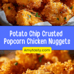 These Potato Chip Crusted Popcorn Chicken Nuggets are crispy, golden, and flavor-packed with a crunchy potato chip coating and juicy chicken inside—all baked, not fried! The creamy dip marinade adds incredible savory depth while keeping the chicken tender and moist.