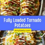 I love making these Fully Loaded Tornado Potatoes because they turn simple ingredients into something fun, eye-catching, and incredibly satisfying. The spiraled shape, crispy edges, melted cheese, and creamy drizzle make them a perfect party snack or cozy treat. They’re easy to prepare and always a hit whenever I serve them.