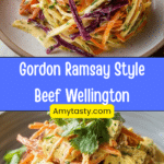 A classic Gordon Ramsay–inspired Beef Wellington featuring tender seared beef fillet, rich mushroom duxelles, and flaky golden puff pastry baked to perfection. This elegant dish delivers restaurant-quality flavor and a stunning presentation for special occasions.