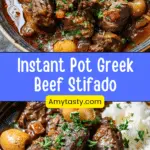 A rich and comforting Instant Pot Greek beef stifado made with fork-tender beef, sweet onions, tomatoes, and warm spices, delivering slow-cooked flavor in a fraction of the time.