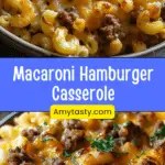 A hearty and comforting macaroni hamburger casserole made with tender pasta, savory ground beef, rich tomato sauce, and plenty of melted cheese, perfect for family-style dinners.