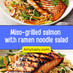 A vibrant and healthy miso-grilled salmon served with a crisp ramen noodle salad. Sweet, savory, and full of umami flavor, this dish combines tender grilled salmon with fresh vegetables and a light sesame dressing — perfect for a quick, impressive meal.