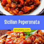 A colorful and flavorful Sicilian peperonata made with sweet peppers, tomatoes, olives, capers, and anchovies simmered in olive oil and vinegar for a rich, tangy Mediterranean dish. Perfect as a side, appetizer, or served with crusty bread.