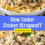 A rich, creamy Slow Cooker Chicken Stroganoff made with tender shredded chicken, mushrooms, and a silky sour cream sauce served over buttery egg noodles. A true dump-and-go comfort meal.