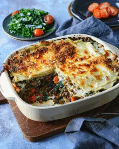This Spinach and Lentil Gozleme-Inspired Pasta Bake is a hearty vegetarian dish that brings together the creamy, garlicky flavors of classic gozleme with the comfort of baked pasta. Layered with pumpkin, ricotta, lentils, and cheddar, it’s wholesome, satisfying, and full of Mediterranean flair.