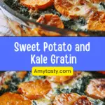 A wholesome and comforting Sweet Potato and Kale Gratin made with tender sweet potatoes, sautéed kale, and a lightly creamy Parmesan topping. A healthy family-friendly side dish ready in under an hour.