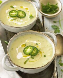 I usually serve it with tortilla chips, but crackers or tostadas work well too.