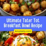 Ultimate Tater Tot Breakfast Bowl Recipe{ “Description”: “A hearty and indulgent breakfast bowl layered with crispy tater tots, fluffy scrambled eggs, savory sausage, melted cheese, and fresh toppings. Perfect for weekend brunch or a comforting breakfast-for-dinner.”, “Ingredients”: “